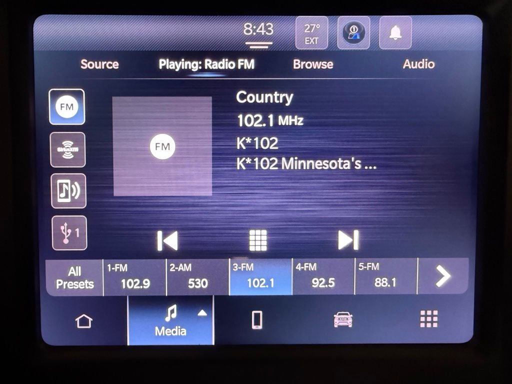 - Radio w/Seek-Scan, Clock, Aux Audio Input Jack, Voice Activation, Radio Data System and Uconnect External Memory Control
