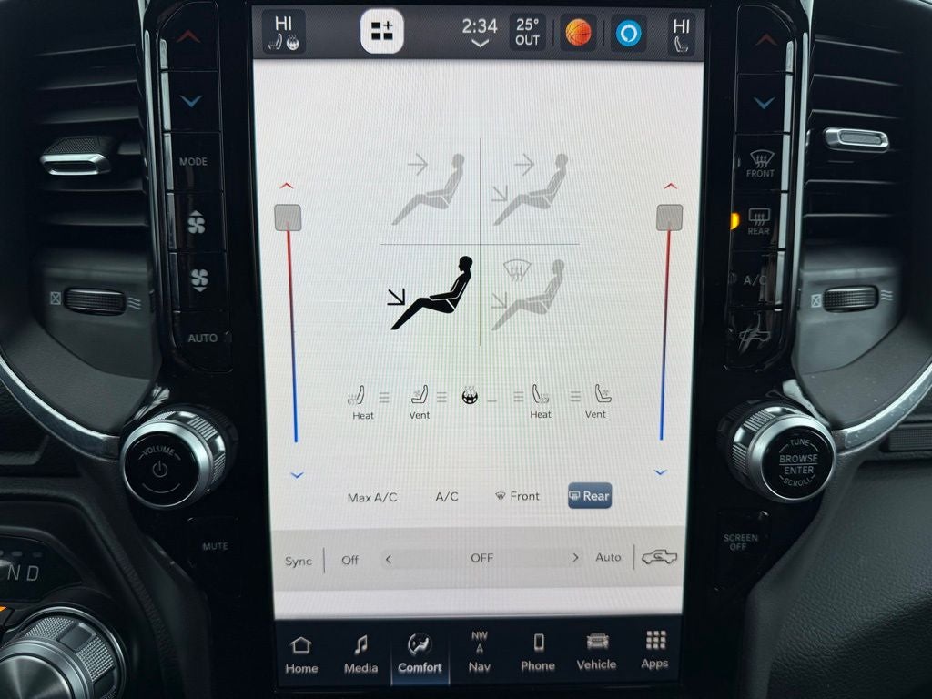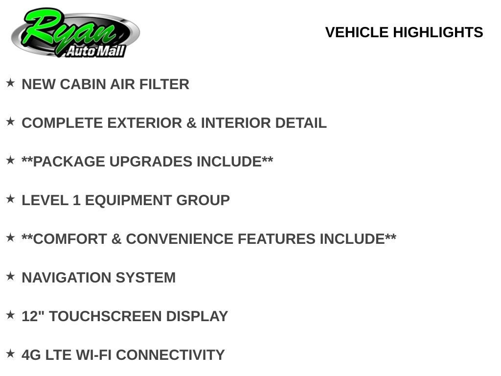 Technology highlights include a large 12-inch touchscreen display with integrated navigation, Apple CarPlay and Android Auto connectivity, and 4G LTE Wi-Fi capability, keeping you connected on every drive. Everyday convenience is further enhanced with remote start, a universal garage door controller, keyless entry with push-button start, and a 120-volt power outlet.