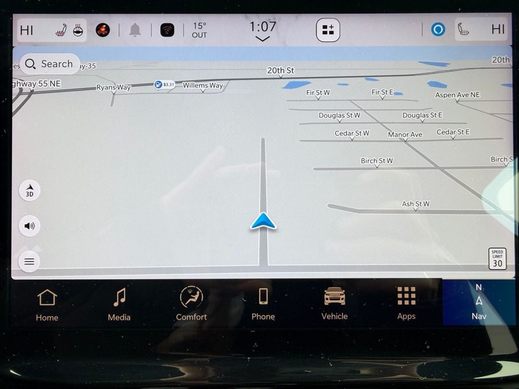 Powered by a capable and efficient engine, the Grand Cherokee delivers a smooth, confident ride both on the highway and in changing Minnesota road conditions. Its advanced four-wheel drive system and limited slip differential provide enhanced traction and stability, while the bold exterior is complemented by deep tinted glass and 18-inch polished and painted aluminum wheels.