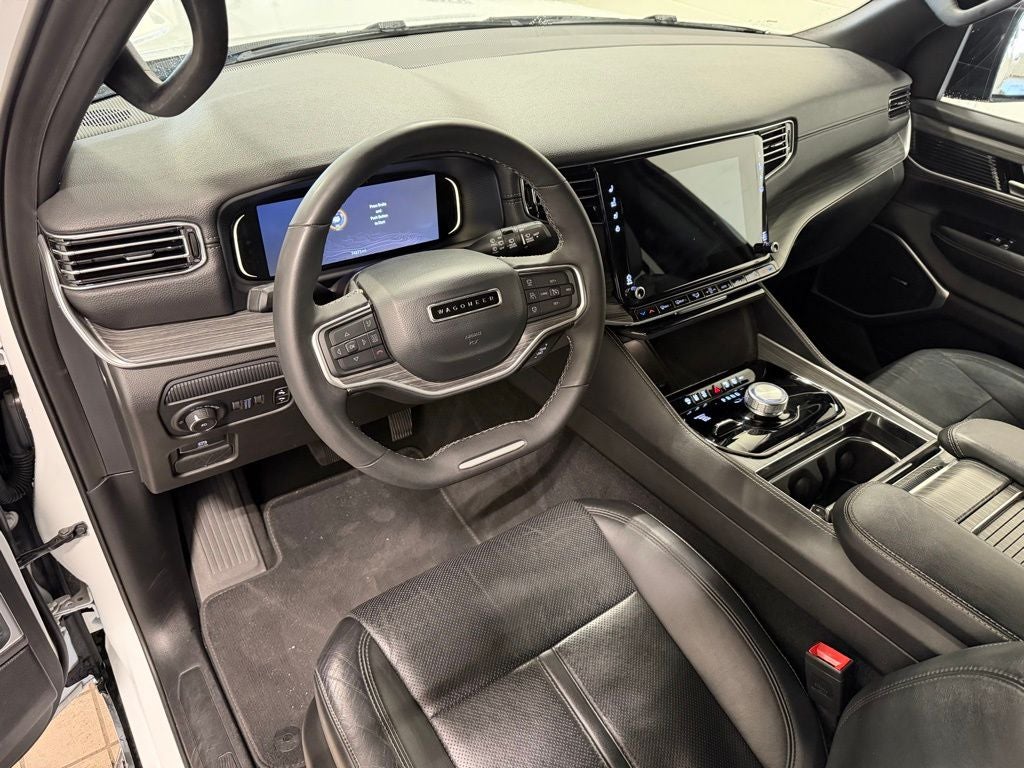 Inside, the Wagoneer L Series II features a spacious and refined cabin with seating for up to eight passengers and premium leather upholstery. Heated and ventilated front seats, a heated steering wheel, and multiple-zone automatic climate control provide year-round comfort. Power driver and passenger seats, power adjustable pedals, and a power tilt and telescoping steering column enhance convenience, while a hands-free power liftgate and side assist steps make everyday use easier.