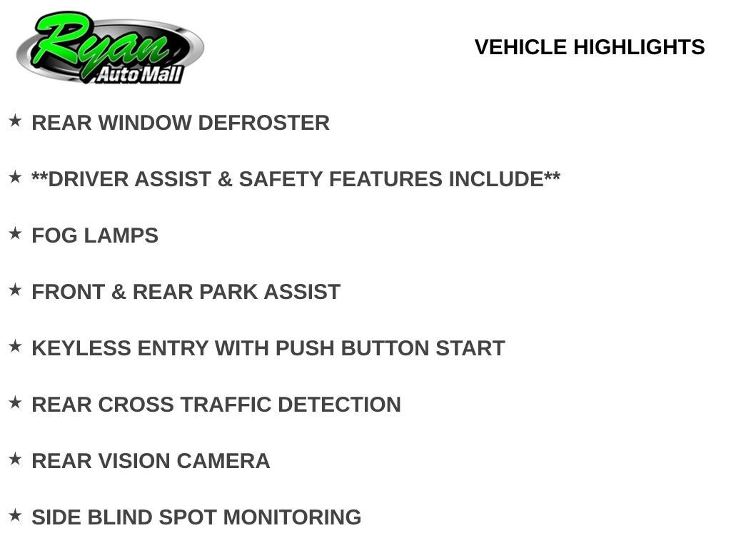 Advanced safety and driver-assist systems include side blind spot monitoring, rear cross traffic detection, a rear vision camera, front and rear park assist sensors, fog lamps, and high-strength exterior construction for added confidence in all conditions across Buffalo and the surrounding Minnesota communities.
